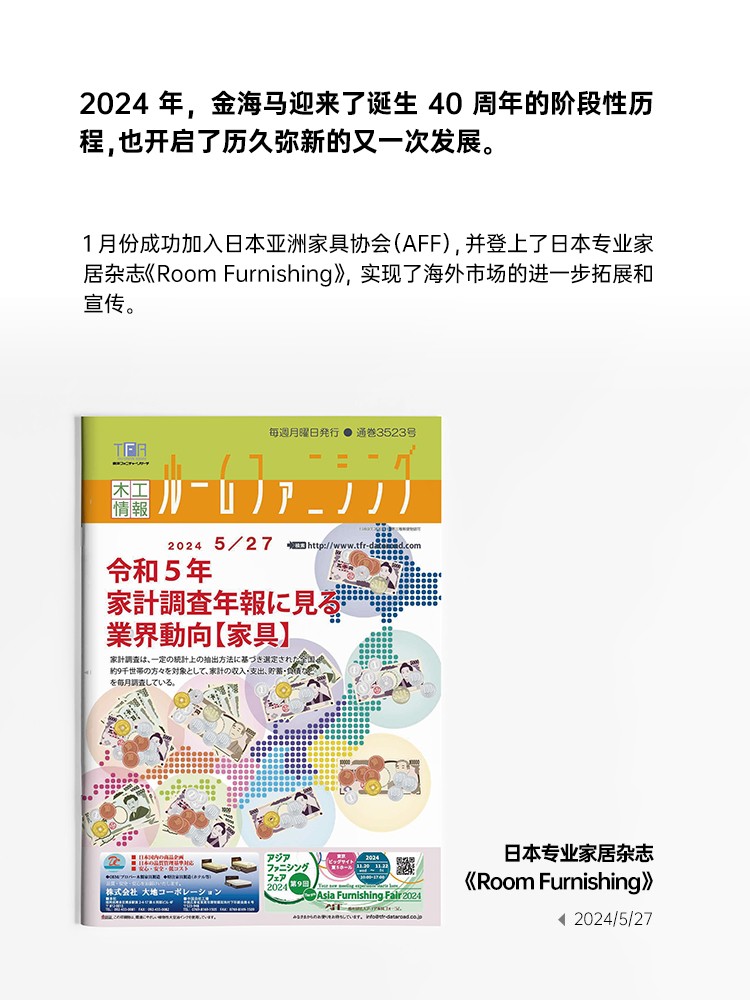 金海馬加入亞洲家具協(xié)會(huì)并登上日本專業(yè)家居雜志《Room Furnishing》